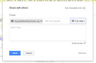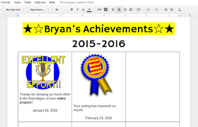 After you add the first award, share it with the student. If they have Google Apps for Education accounts, this is easy. Just Share as you would any document, but be sure to make it View only. You don't want them to be able to edit these achievement pages.