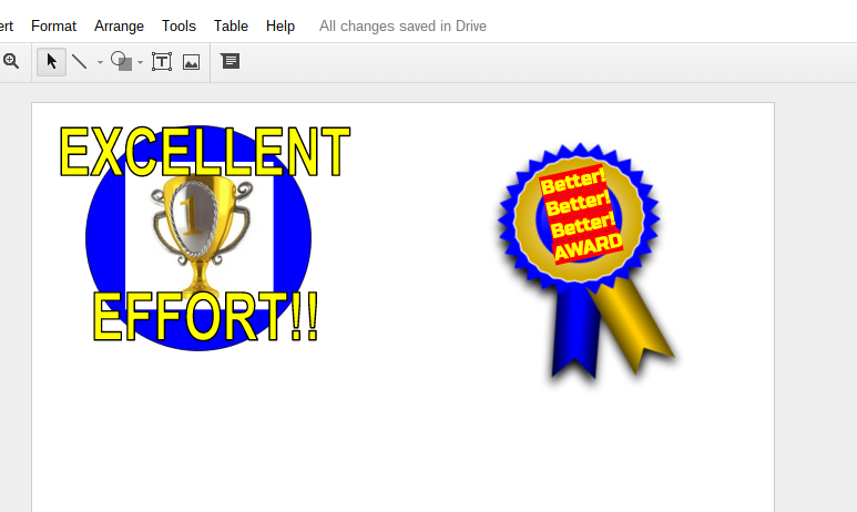 Add some Word Art, shapes or text boxes to decorate each award. Make them personal! Name them after your favorite phrases, teaching techniques or projects. Of course, encourage a growth mindset too. If you need ideas, here's a great list of resources from Vicki Davis' blog.