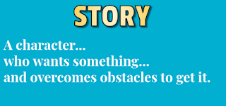 I take one class period with a middle school class. I explain that we will be writing stories for elementary students and that requires us to find what makes a good story. Through examples and discussion, we build up to a definition I have written about before, based on Donald Miller's books. He explains that every good story is about...