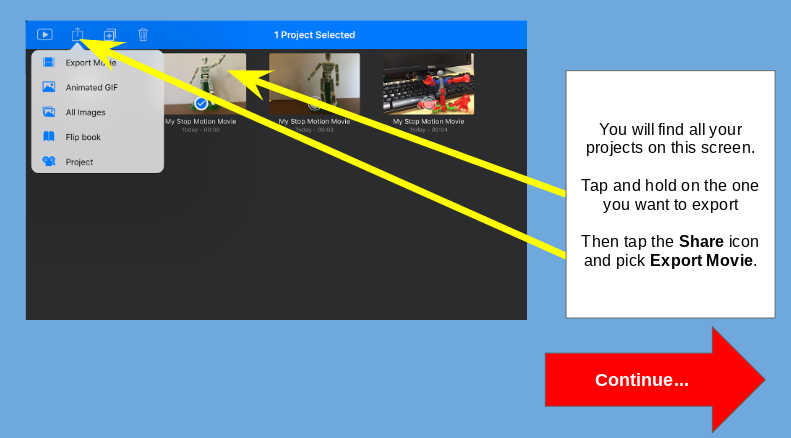 • Export the video to the Photos area on the iPad
